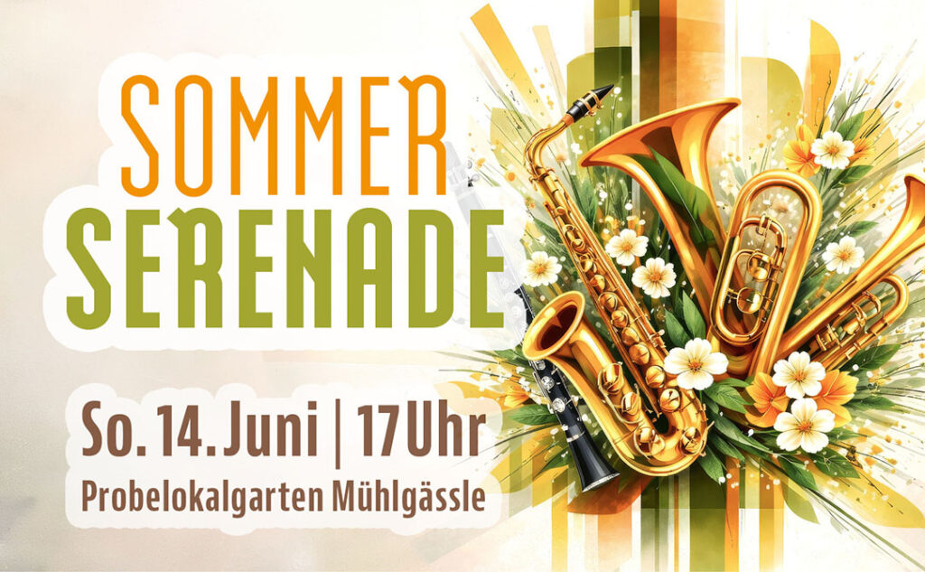 Die „SommerSerenade“, die im Sommer 2023 erstmals im Garten des Probelokals veranstaltet wurde, findet am Sonntag, 14. Juni in zweiter Auflage statt. Das Konzept, sommerlich-leichte Blasmusik in entspannter und lockerer Atmosphäre im Grünen zu bieten, versprüht einen ganz eigenen Charme, sowohl für die Musikerinnen und Musiker als auch fürs Publikum.