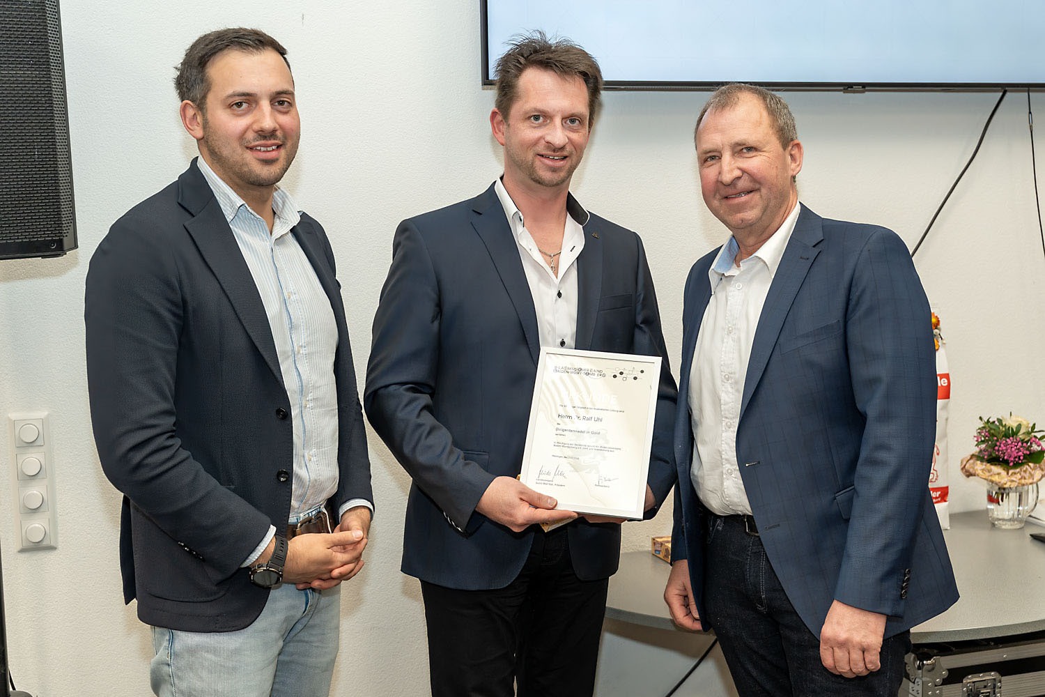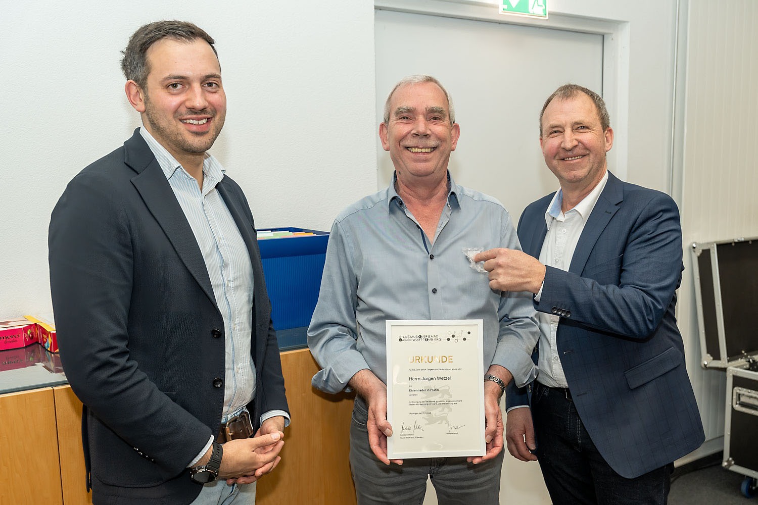 In entspannter Atmosphäre hielt die Stadtkapelle am Samstag, 21. April ihre Jahreshauptversammlung im Probelokal ab. Neben den Rechenschaftsberichten der Vorstandsmitglieder wurden wieder zahlreiche Musikerinnen und Musiker für langjährige Vereinszugehörigkeit ausgezeichnet: Dirigent Dr. Ralf Uhl für 20-jährige Dirigententätigkeit, Andreas Münz für 20 Jahre, Stefan Lutz, Lorenz Stökler und Mareen Schmal für zehn Jahre sowie Jürgen Wetzel für 50 Jahre (von links). Ellen Müller (Zeite von rechts) für 25 Jahre Vereinstätigkeit die Verdienstnadel in Gold mit Diamant. Nach über 28 Jahren als Vizedirigent stellte zudem Hans-Peter Lang sein Amt zur Verfügung. Einstimmig als dessen Nachfolgerin gewählt wurde die Erste Klarinettistin und langjährige Notenwartin Larissa Wetzel. Deren Amt übernehmen künftig Oboistin Susanne Schad und Posaunist Christian Schad.