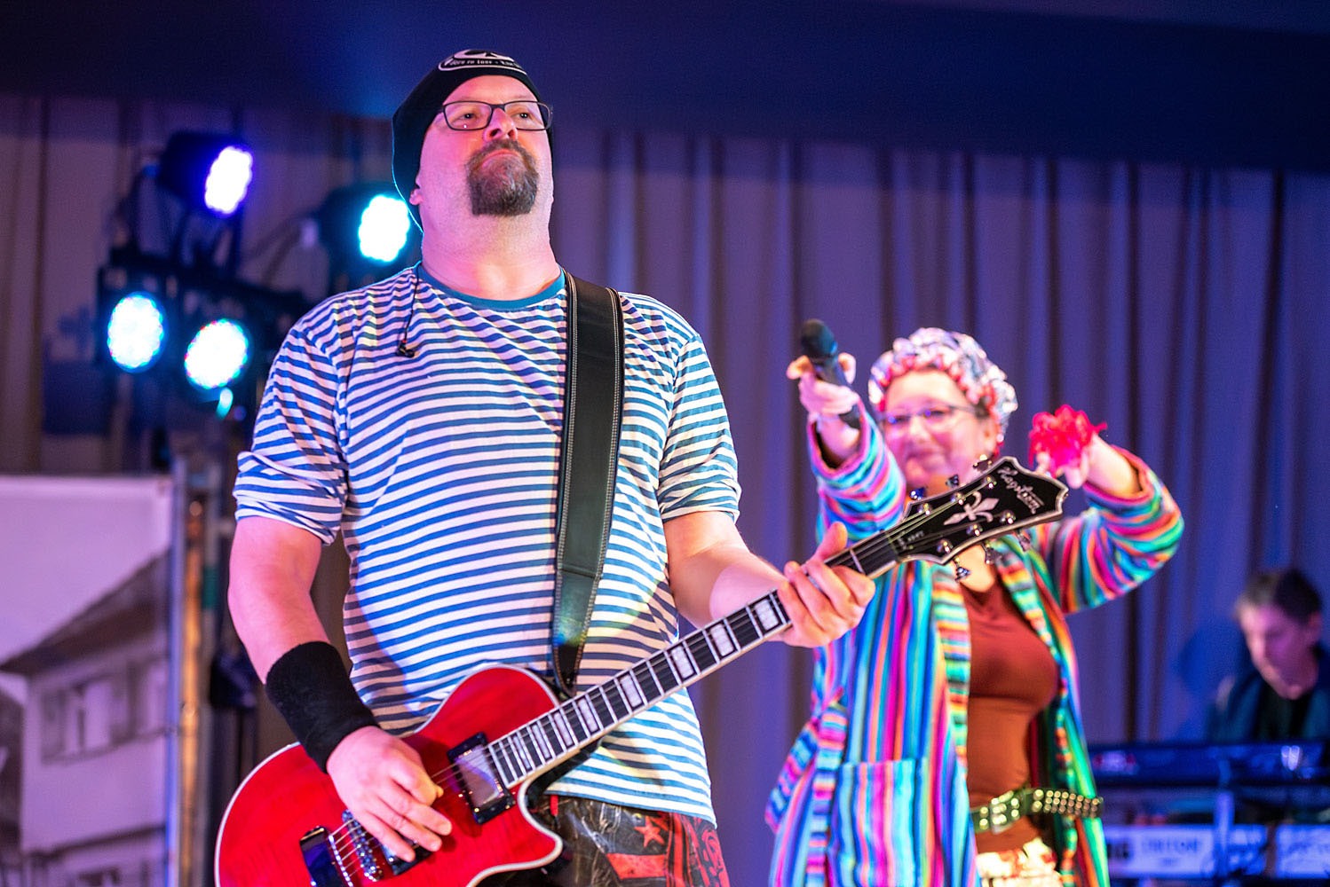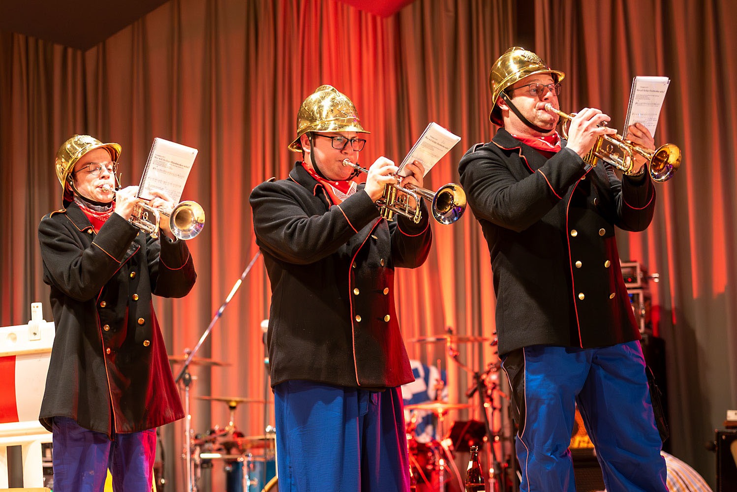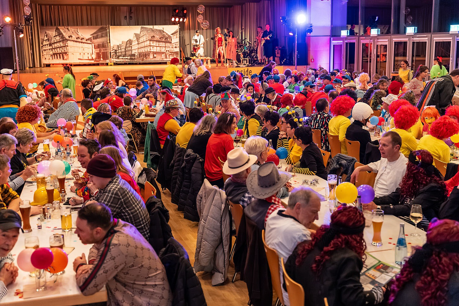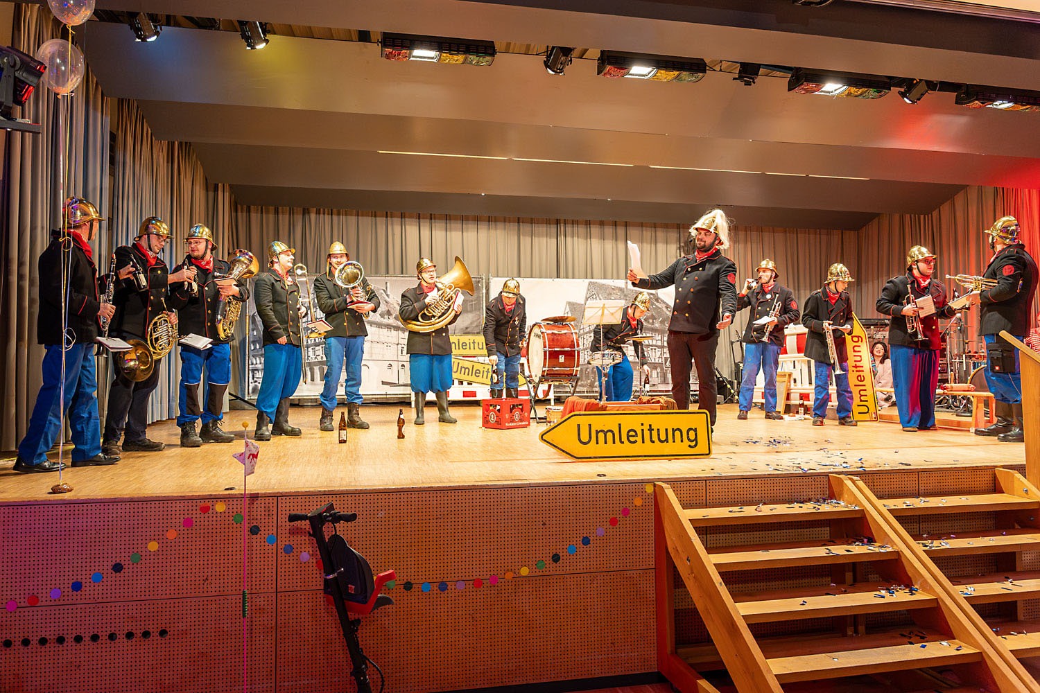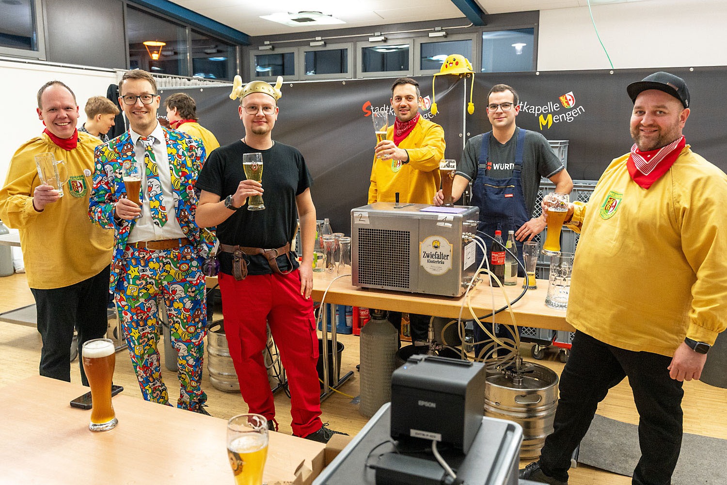 Man durfte mal wieder über die Stadtkapelle staunen: mit durchweg vereinseigenen Kräften ging am 7. Februar der Musikball im vollen Bürgerhaus in Ennetach über die Bühne. Mit einem bunten und kreativen Programm wurde dem närrisch und einfallsreich kostümierten Publikum ein bunter und humorintensiver Abend unter dem Motto „Helden der Kindheit“ geboten. Neben den altbewährten Kräften überraschte heuer eine Truppe von Jungmusikern, die ihr Debüt mit Bravour auf die Bretter legten und Lust auf mehr macht. Die Band „upside down“ bescherte den feierfreudigen Gästen eine rauschende Ballnacht, die bis weit in den Morgen andauerte.