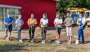 Mit dem Spatenstich starten die Außenarbeiten